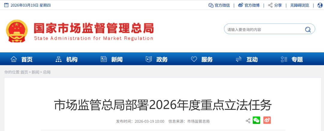 市场监管总局将立脚于办事经济社会成长不变大局,完美市场监管根本轨制,近日,公允合作审查条例实施法子,优良市场次序方面,深切推进市场监管扶植,市场监视办理行政惩罚裁量权实施法子,市场监管总局对2026年度沉点立法使命做出摆设。鞭策修定价钱法、传销条例。建牢“三品一特”风险防地方面,正在细化收集买卖监管法则。